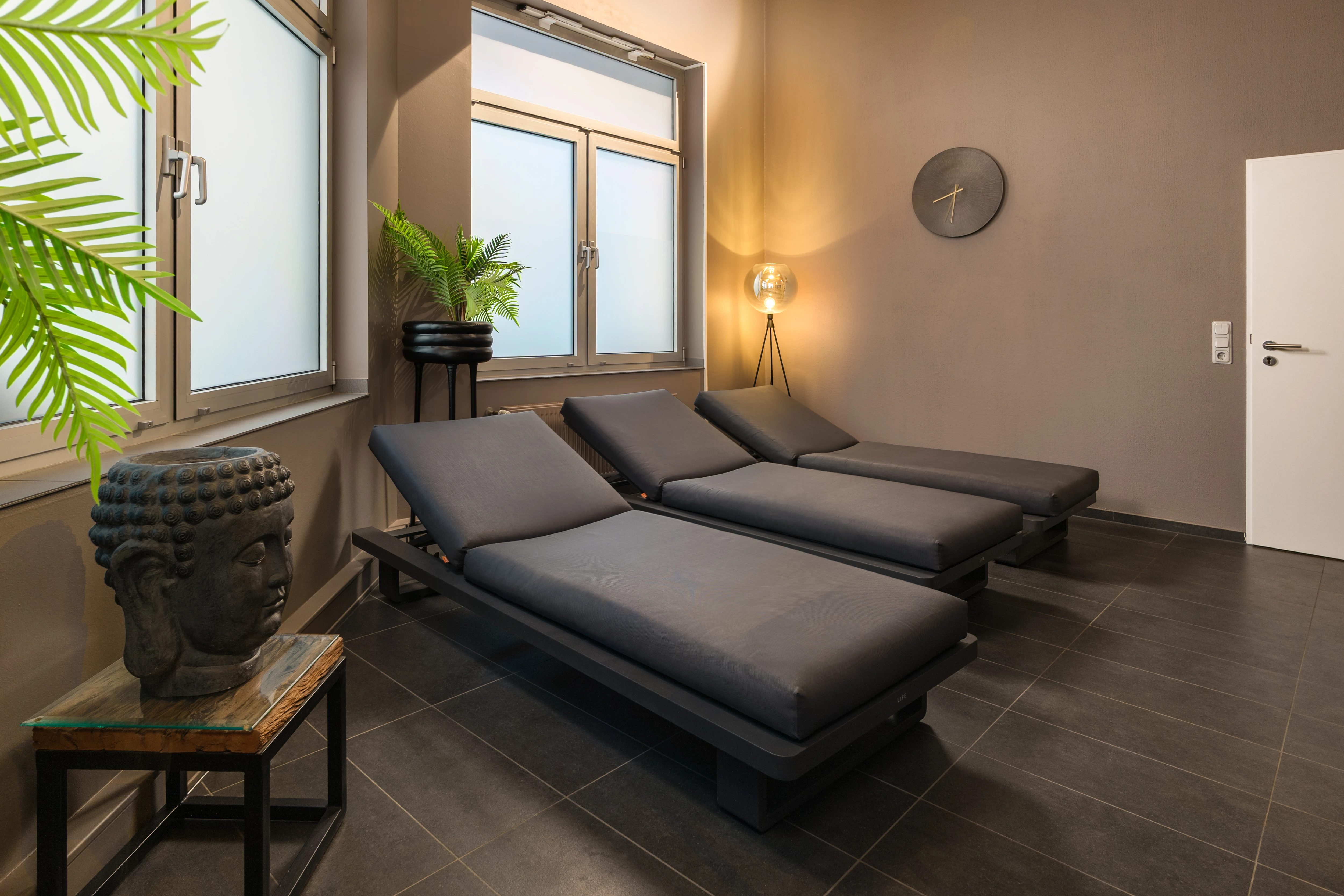 Nach dem Training kannst du in unserer gemütlichen Lounge entspannen und neue Energie tanken – vielleicht bei einem kleinen Plausch mit anderen Mitgliedern. Unsere hellen, sauberen Umkleiden mit komfortabler Ausstattung sorgen dafür, dass du dich rundum wohlfühlst.
